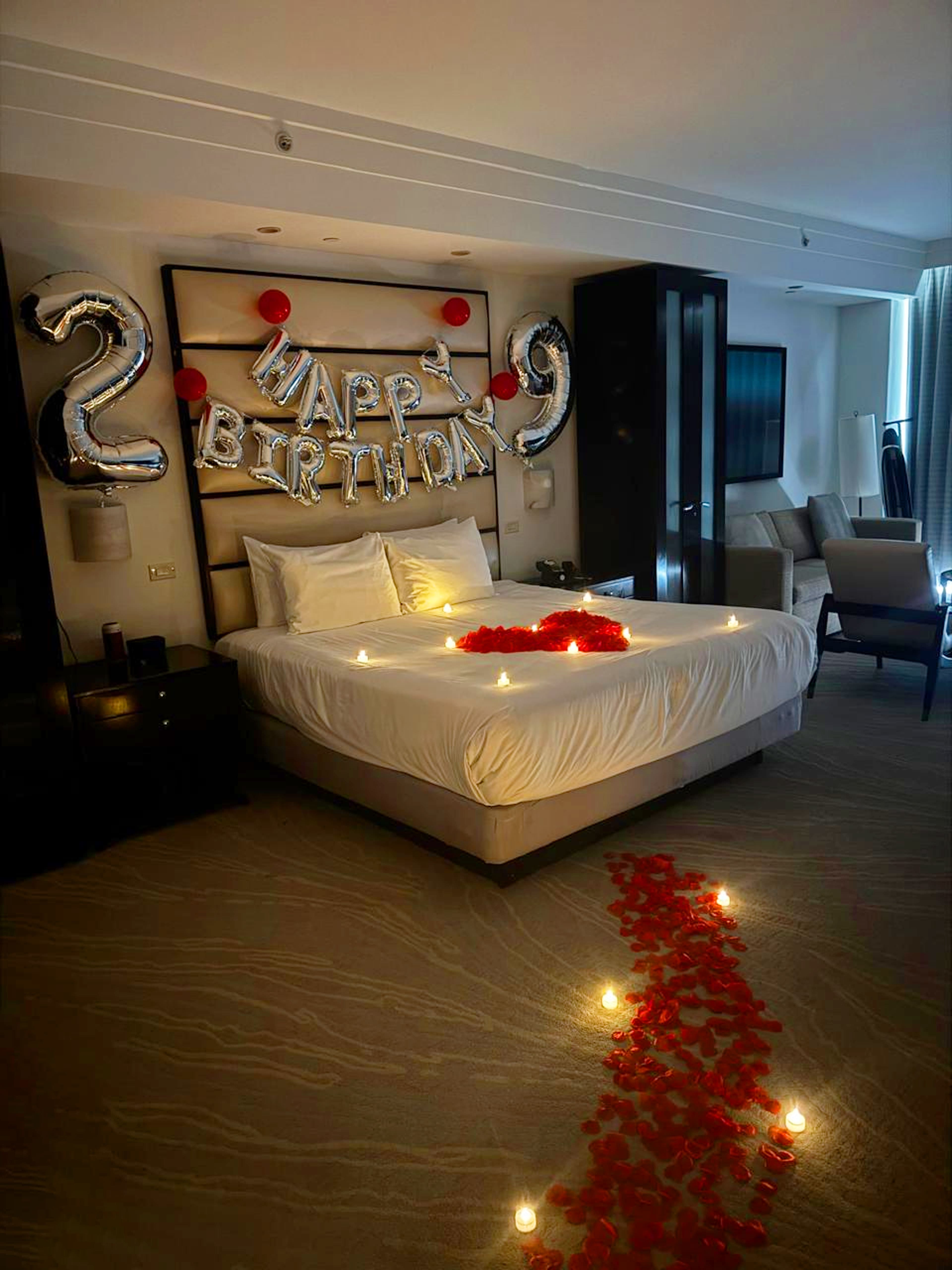 At Hotel Room Decoration, we specialize in creating unforgettable moments by transforming hotel rooms into beautifully decorated spaces for any special occasion. Whether you're celebrating a birthday, anniversary, romantic getaway, or Valentine's Day, our expert team will craft the perfect ambiance with elegant decorations, balloons, candles, and personalized touches to make your stay truly memorable.