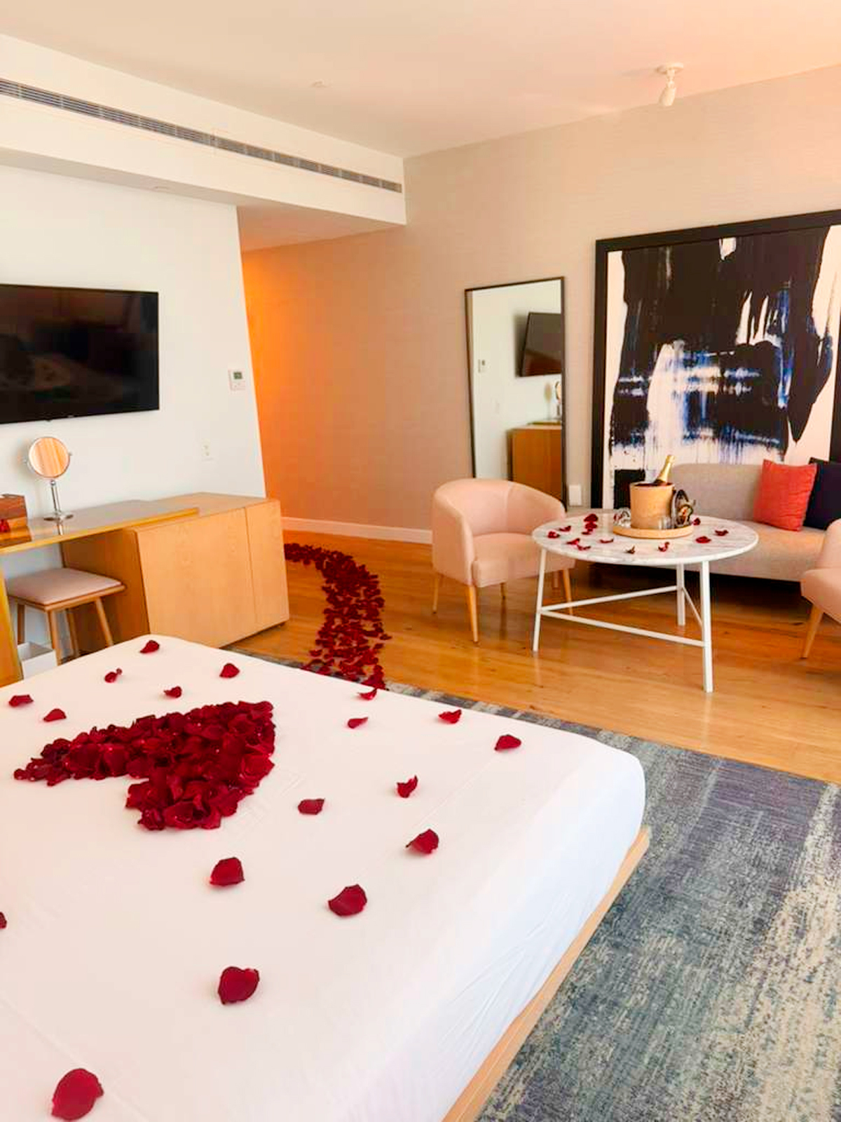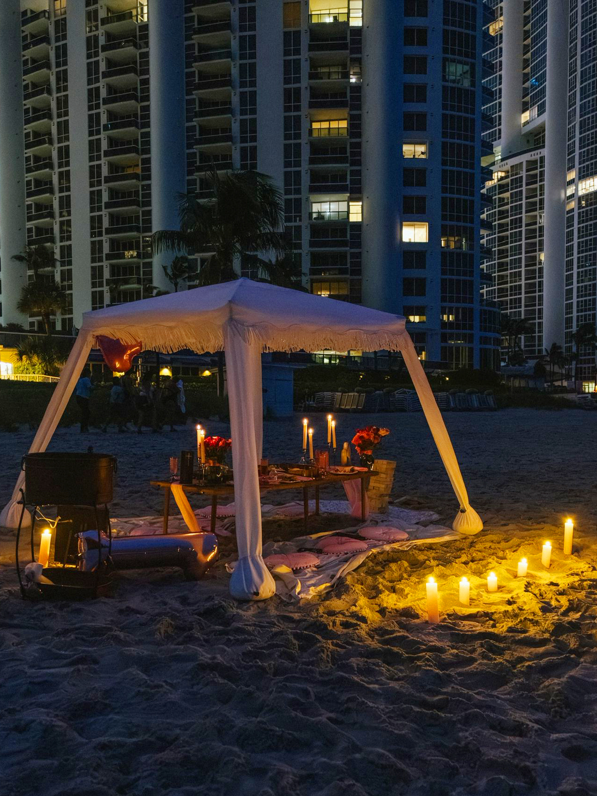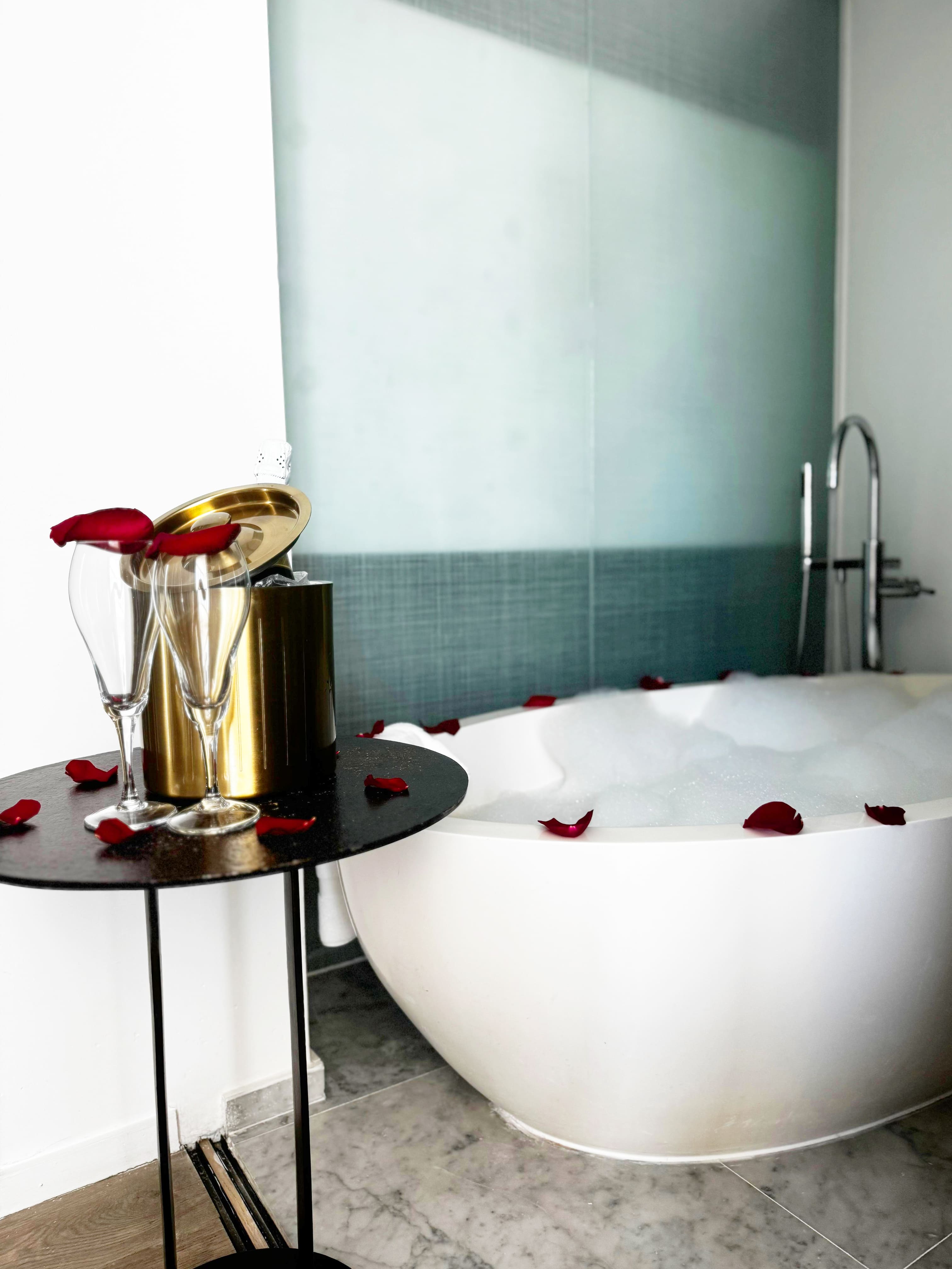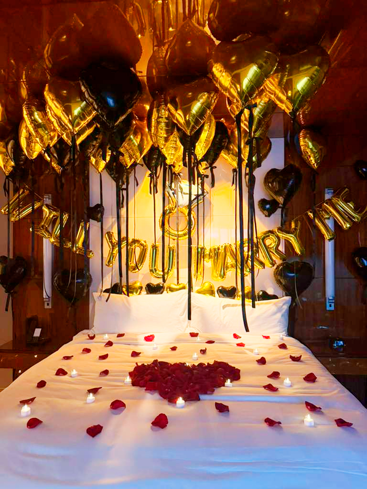 Create a magical ambiance with rose petals, candles, and elegant romantic decor!.
