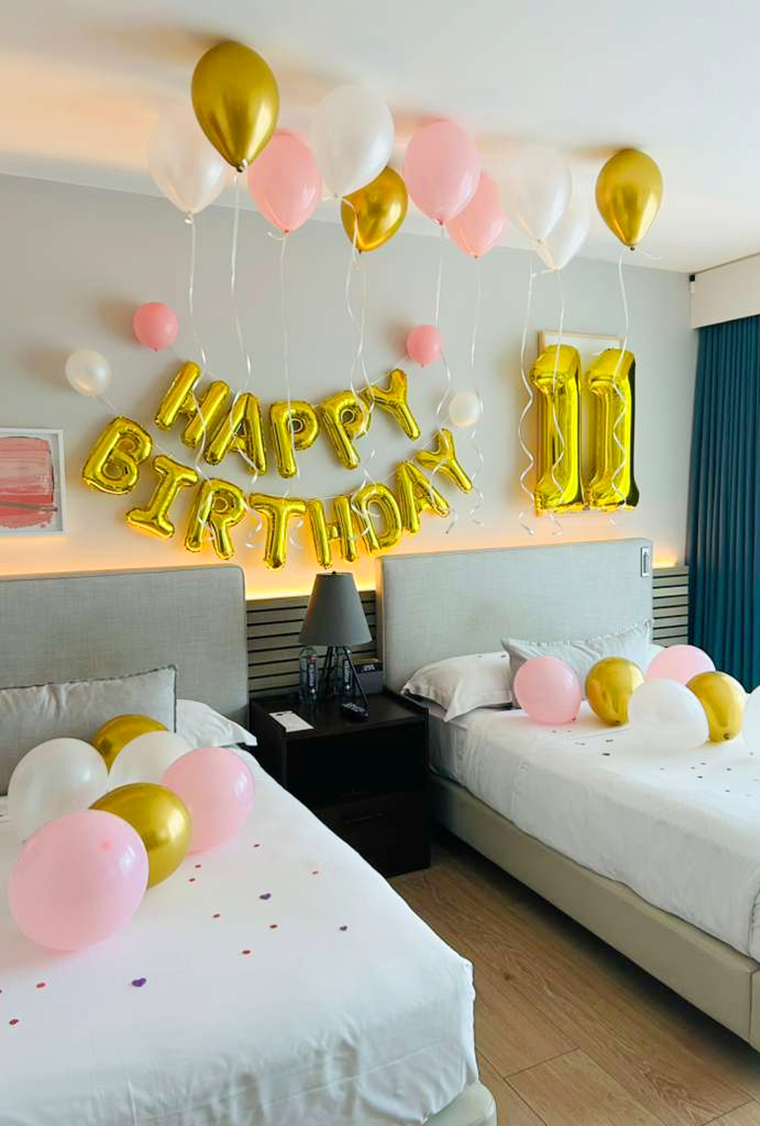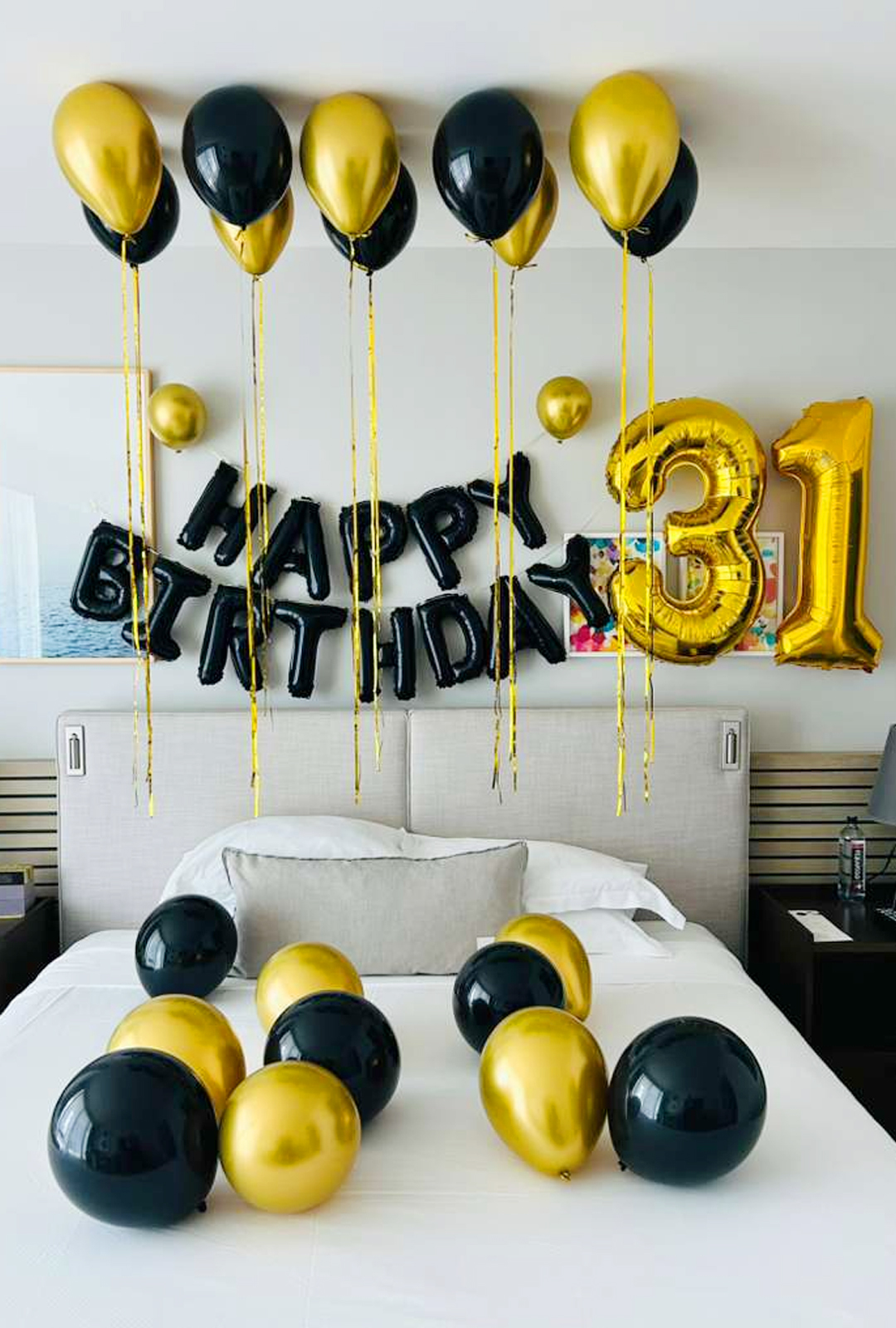10 BALLONS AROUND ROOM/BED